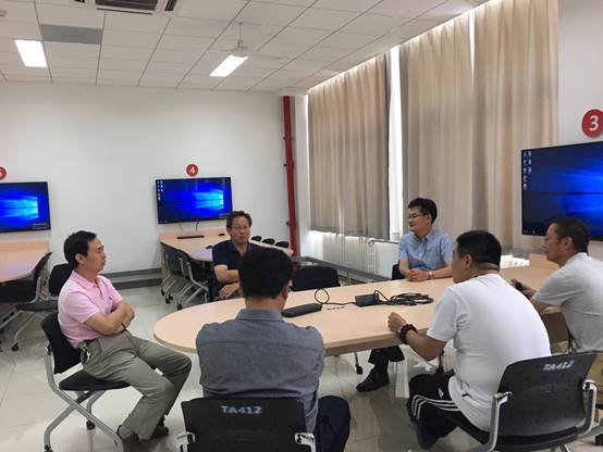 会谈期间,王岳寿副处长向客人详细介绍了我校教教室班牌的相关建设方案及所遇到的问题,并对客人感兴趣的相关教室管理及课程资源建设等问题进行了详细的解答。