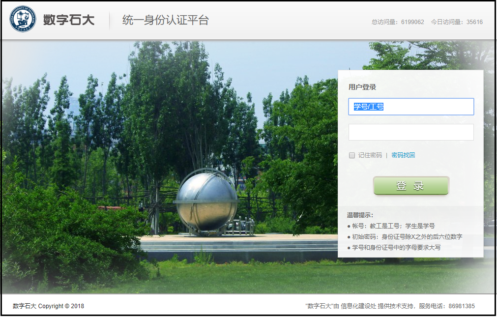 数字石大负责我校统一门户和统一身份认证的运维和管理,实现单点登录,改善用户体验;通过权限管理和角色管理,对已经实现身份认证的应用进行精细化管理。教工可以通过数字石大直接登录绝大部分我校信息系统。