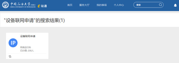 数字石大 - 办公应用“e站通” - 服务大厅搜索“设备联网申请” - 填写申请表