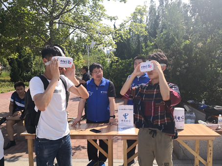 “创造太阳”前还特别布置了VR眼镜和5G终端手机体验点。现场测试峰值速率达到829.4Mbps,对5G网络的增强移动带宽性能是完美的体验。