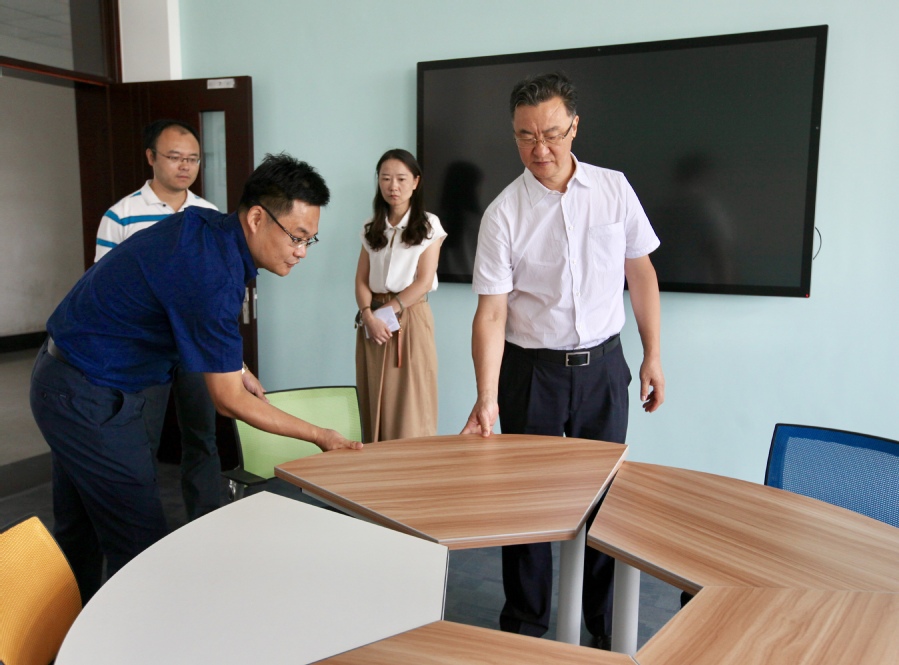 刘华东首先代表学校对必赢3003no1线路检测中心提出了高度表扬,必赢3003no1线路检测中心从改造方案、暑假工序安排到时间节点都很到位,为学校事业和发展做出了贡献;要求必赢3003no1线路检测中心要加强教师的使用培训,为师生提供有力的技术保障,与教务处、后勤管理处一道打造更好的教学环境,做到真正让学生有更好的发展与提升;要加强对新型研讨型教室的宣传工作,加强信息技术与教育教学融合发展的宣传。刘华东表示,研讨型教室建设是学校全面贯彻落实全国教育大会精神,充分重视教学工作的重要体现,要加强下一步的工作思考,利用两到三年时间完成全校教室改造。