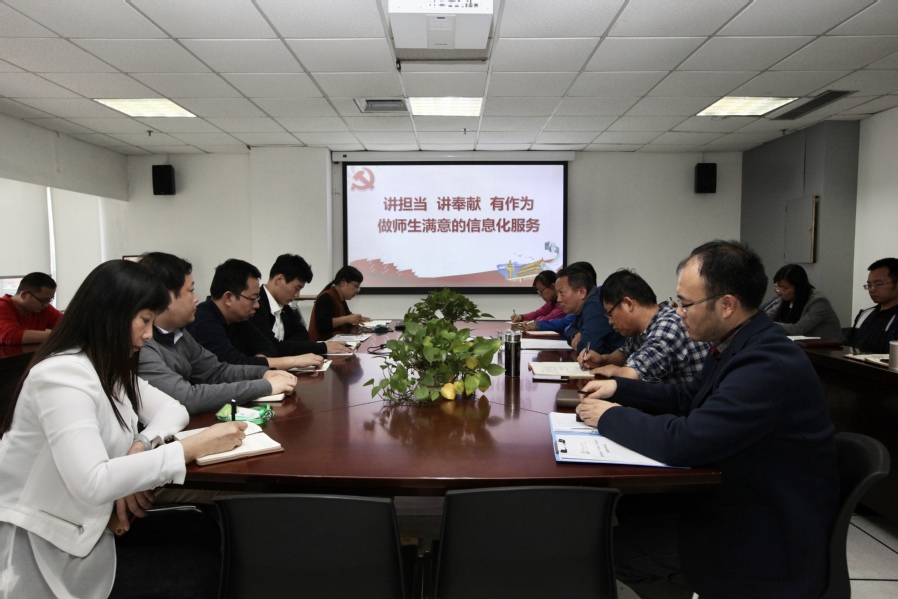 王岳寿同志以“讲担当、讲奉献、有作为”为主题给全体党员讲党课。第一,工作定位要高标准,要有勇于担当的精神。第二,要按期完成工作任务,要有无私的奉献精神。第三,强调工作要有责任感、使命感、要有主人翁精神,要做师生满意的信息化服务。