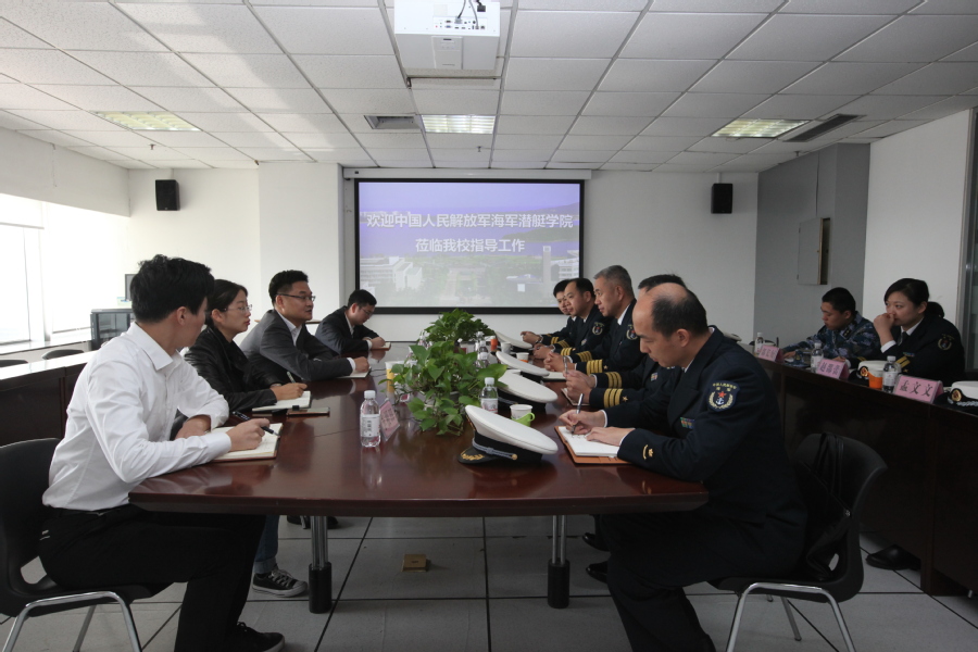 10月17日,中国人民解放军海军潜艇学院副院长崔颖波一行来校访问,考察学习信息化建设情况。副校长姚军与来宾座谈。