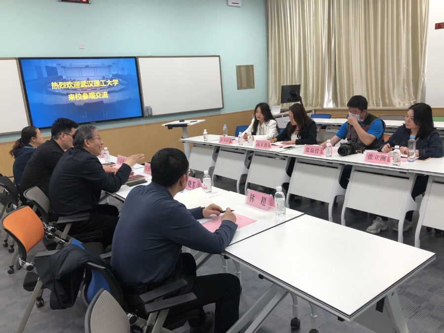 王岳寿主任首先对武汉理工大学的来访表示欢迎,并带来宾参观智慧教室,介绍了学校智慧教室建设、教学资源建设方面的工作现状、发展方向以及面临的挑战以及下一步应对措施。