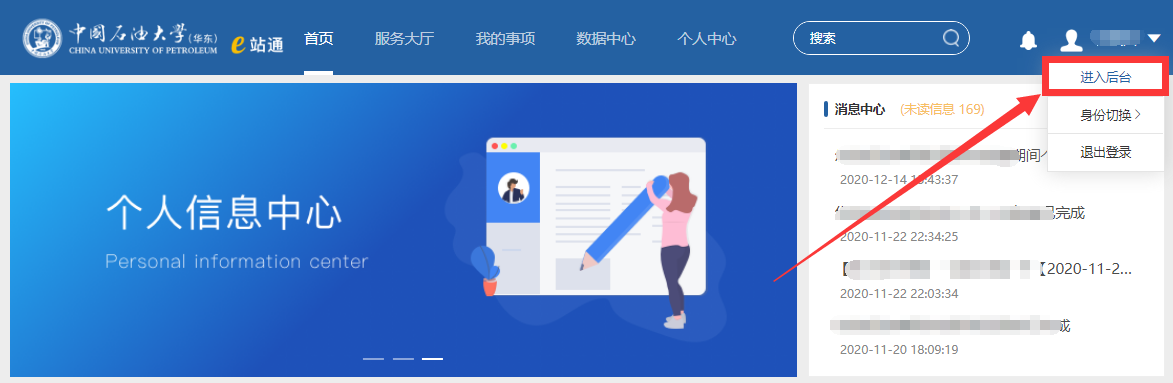 (1)进入e站通,点击“进入后台”。