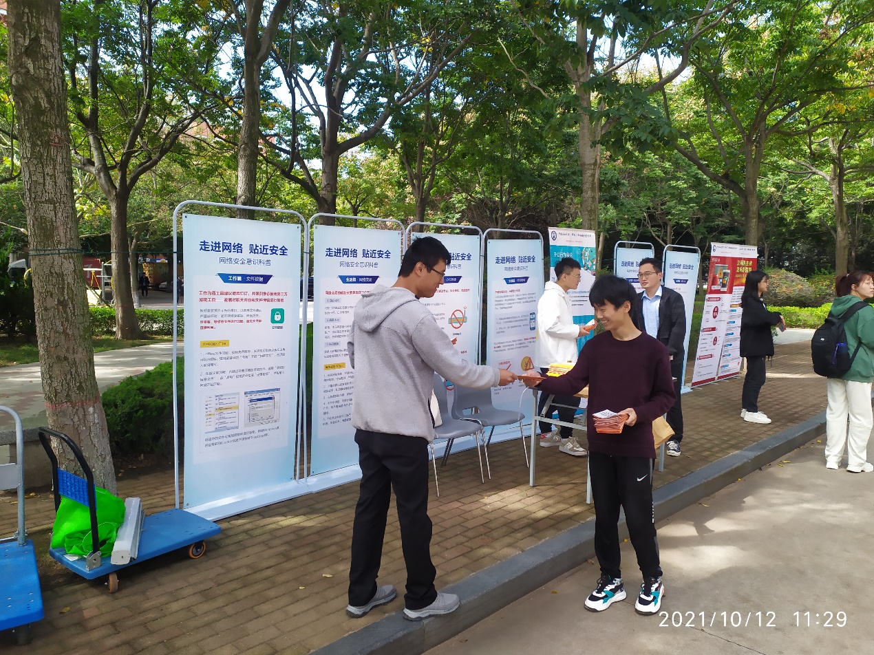 10月12日的主题是校园日,学校党委学生工作部(武装部)与必赢3003no1线路检测中心在玉兰苑餐厅西侧联合举办了网络安全宣传活动,来往师生兴致勃勃的参观了网络安全知识展板,并认真听取了宣传员对《中华人民共和国数据安全法》和《中华人民共和国个人信息保护法》的介绍,得到了大家的积极响应。