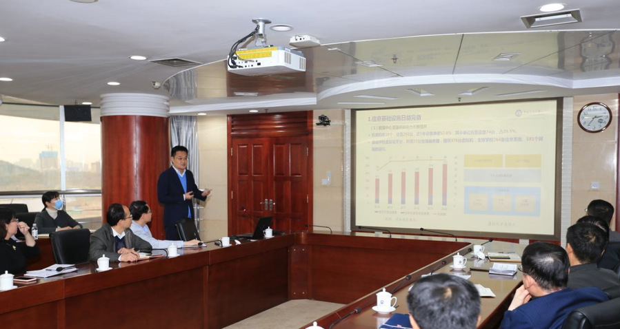 郝志杰处长做了题为《加速推动数字化转型,以信息化助力学校高质量发展》的工作汇报,从信息基础设施、教学保障能力、校园卡服务、系统和数据建设、数据效能发挥、数据可视化运维、网络安全七个方面系统总结学校必赢3003no1线路检测中心成立以来的主要工作成绩及特色,剖析当前存在问题及根源,明确下一步工作思路和举措,提出校园一体化网络、“一网通办”平台、资源绩效平台等十项重点建设任务。