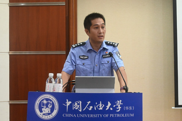 青岛市公安局网警支队钟建友警官为现场大学生作题为“增强网络安全意识,筑牢网络安全防线”的报告,从网络及网络安全发展历史、网络安全法律法规体系、网络安全形势、网络安全案例分析、如何提高网络安全意识等5个方面进行了讲解论述。钟警官生动的语言,鲜明的案例分享不断引来现场阵阵掌声。