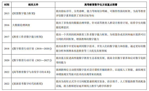 表8 欧盟高等教育数字化战略行动