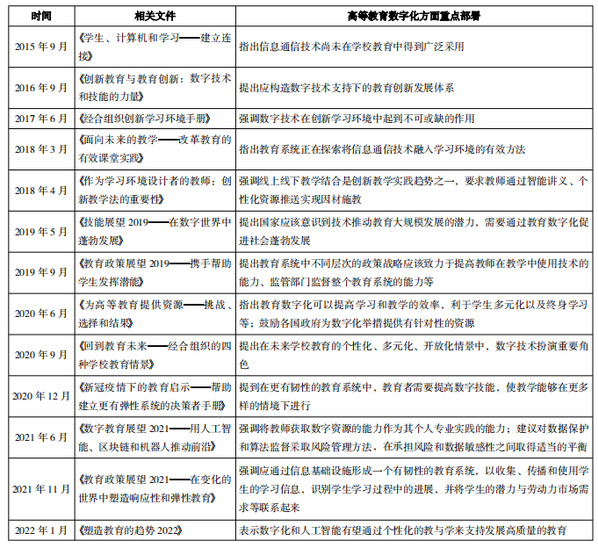 表7 经济合作与发展组织高等教育数字化报告