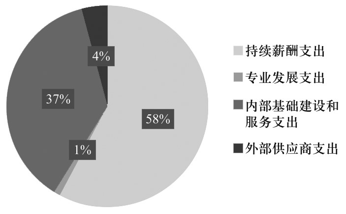高等教育数字化发展离不开数字化人员支持和经费投入作为保障。2017 年,一项基于800余所美国高校关于IT方面财务、人员配备和服务的调査发现(见图2),美国高校信息技术方面的支出平均占学校总支出的4.3%,学校每年为每个在读学生、在职教师及员工的花费为958美元。平均而言,每1000 名大学师生中,就有7.9个负责数字化的全职工作人员,其中学生员工平均占数字化工作人员总数的17%,学校为每位负责数字化的工作人员专业发展方面的支出平均为1162美元。