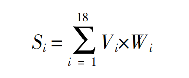 其中,Vi代表具体测量指标处理后的值,Wi为具体测量指标(三级指标)权重值。