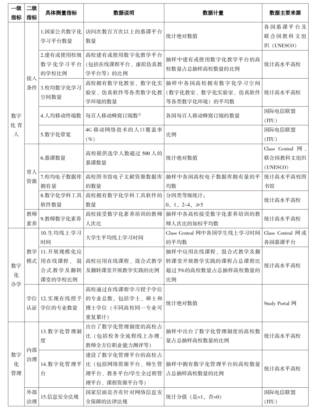表1 世界高等教育数字化发展指标