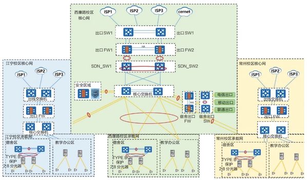 二是高速互联与业务智能化。为实现校区间的高效互联,河海大学两地三校区互联带宽提升至100G,这一跃升极大地增强了网络的数据承载能力,为校园内高清视频传输、大规模数据分析和云计算等高带宽应用提供了强有力的支持。