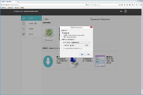 6.通过点击【这里】弹出下载窗口,用户可以将其保存在本地电脑上的任意位置,下次使用直接打开相应的Rdp文件即可访问VDI。