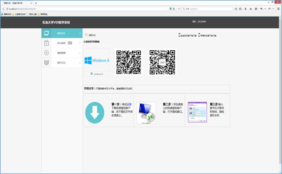 5.对于审批通过或者已经拥有的虚拟桌面申请(VDI),用户在单点登录认证通过后会直接跳转到我的VDI页面,用户可以通过相应的提示操作,将Rdp文件保存到桌面上,然后双击打开输入账号密码进行登录VDI。
